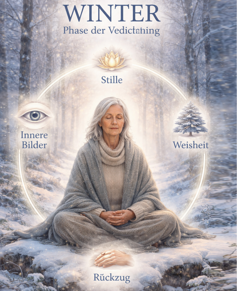 Wer die Winterphase bewusst erlebt, begreift, dass die Leere, das Nicht-Können, die scheinbare Sinnlosigkeit kein Ende ist, sondern die Voraussetzung für neue Schöpfung.