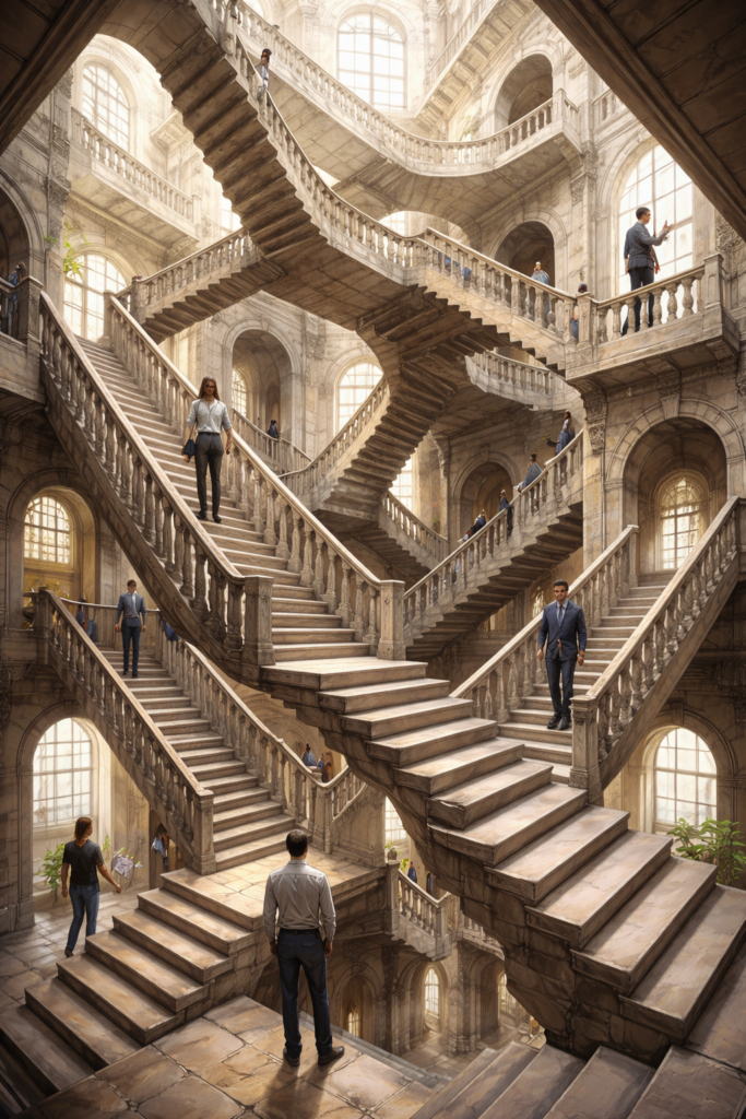 Dabei wird meist dasselbe Denkmodell angewendet, das das Problem mit hervorgebracht hat. Wenn-dann-Logik, Zielorientierung, Leistungssteigerung. Kurzfristig kann das erfolgreich sein, besonders bei technischen oder klar abgrenzbaren Aufgaben.